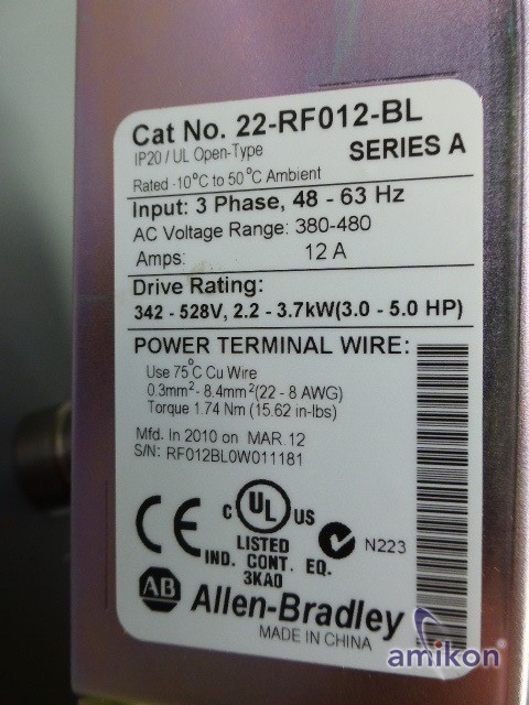 Allen Bradley Line Filter 22-RF012-BL 22RF012BL