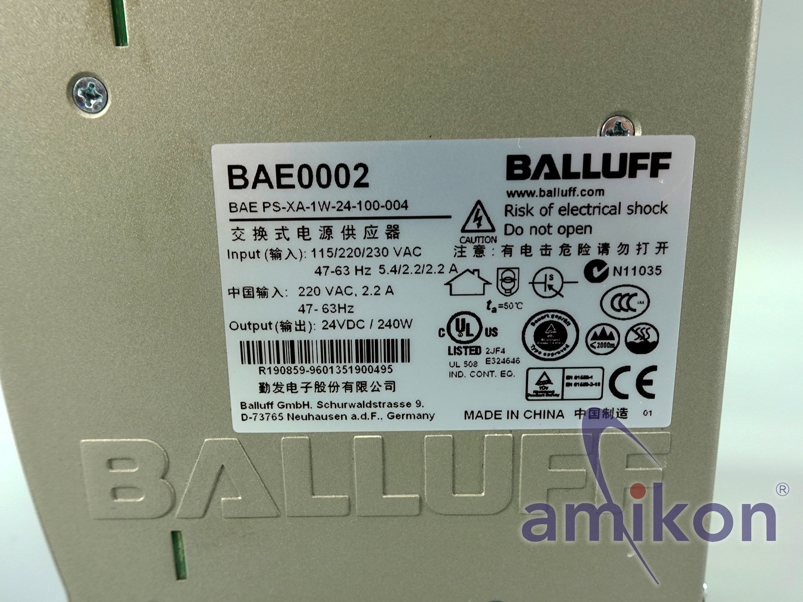 Balluff BAE PS-XA-1W-24-100-004 Netzteil 24V DC 240W Industrie Schaltnetzteil