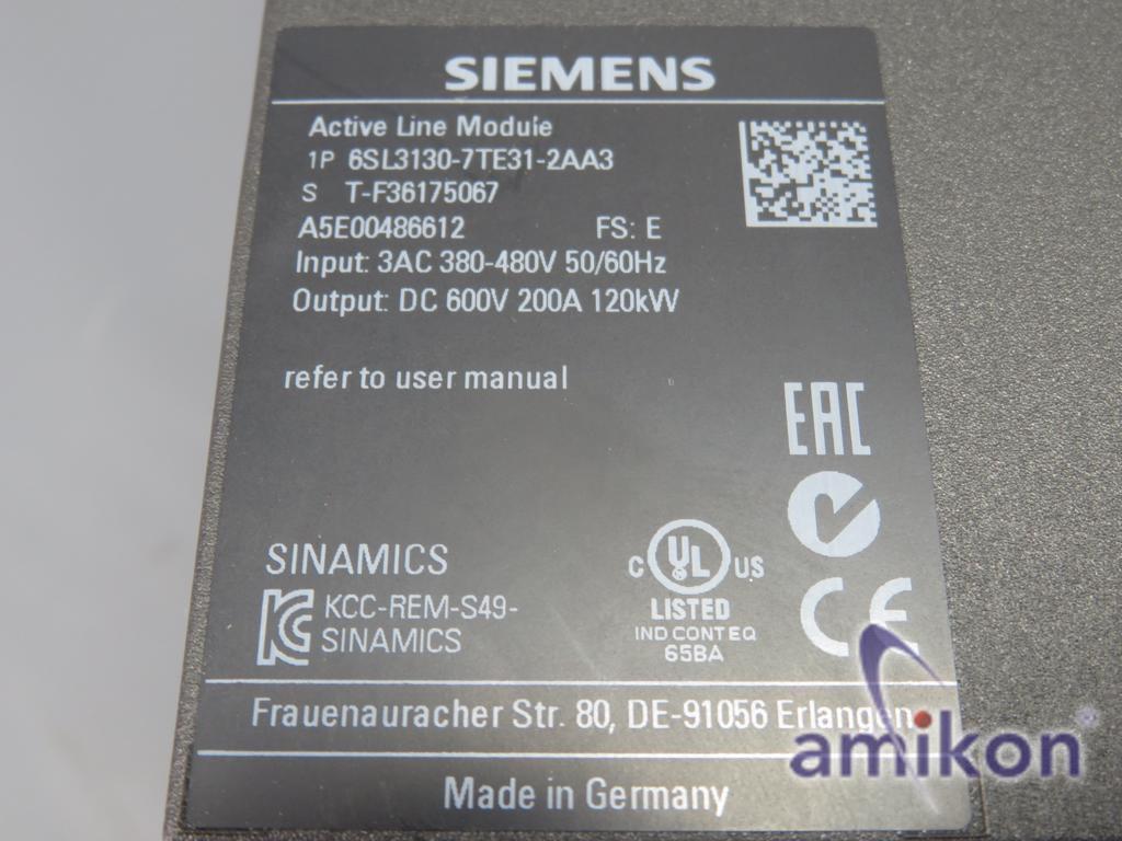 Siemens Sinamics S120 Active Line Module 6SL3130-7TE31-2AA3