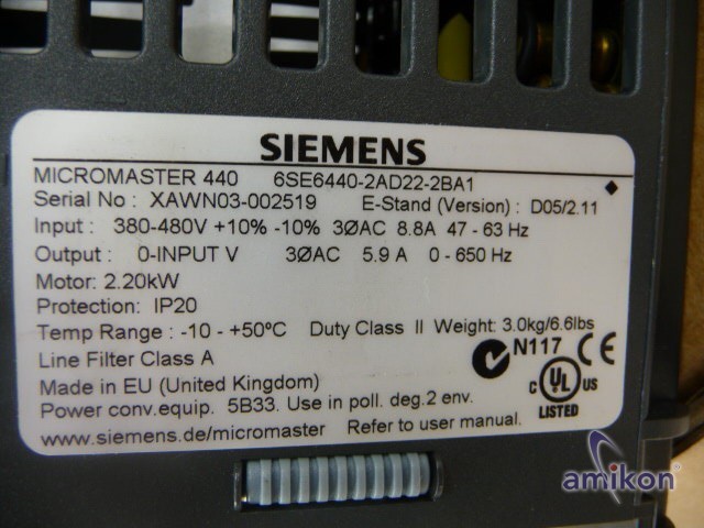 Hier bieten wir ein Siemens Micromaster 440 an.