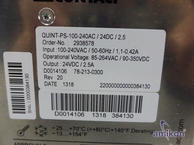 | Model | Phoenix Contact QUINT-PS-100-240AC/24DC/ 2.5 - 2938578 |