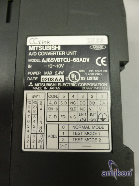 | Modell | Mitsubishi Melsec A/D Converter Modul AJ65VBTCU-68ADV |