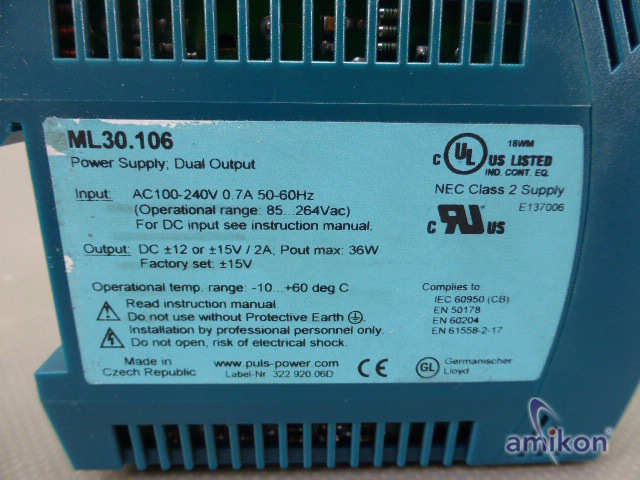 | Modell | Puls Stromversorgung ML30.106 1-Phasen Eingang, ±12V, 2A |