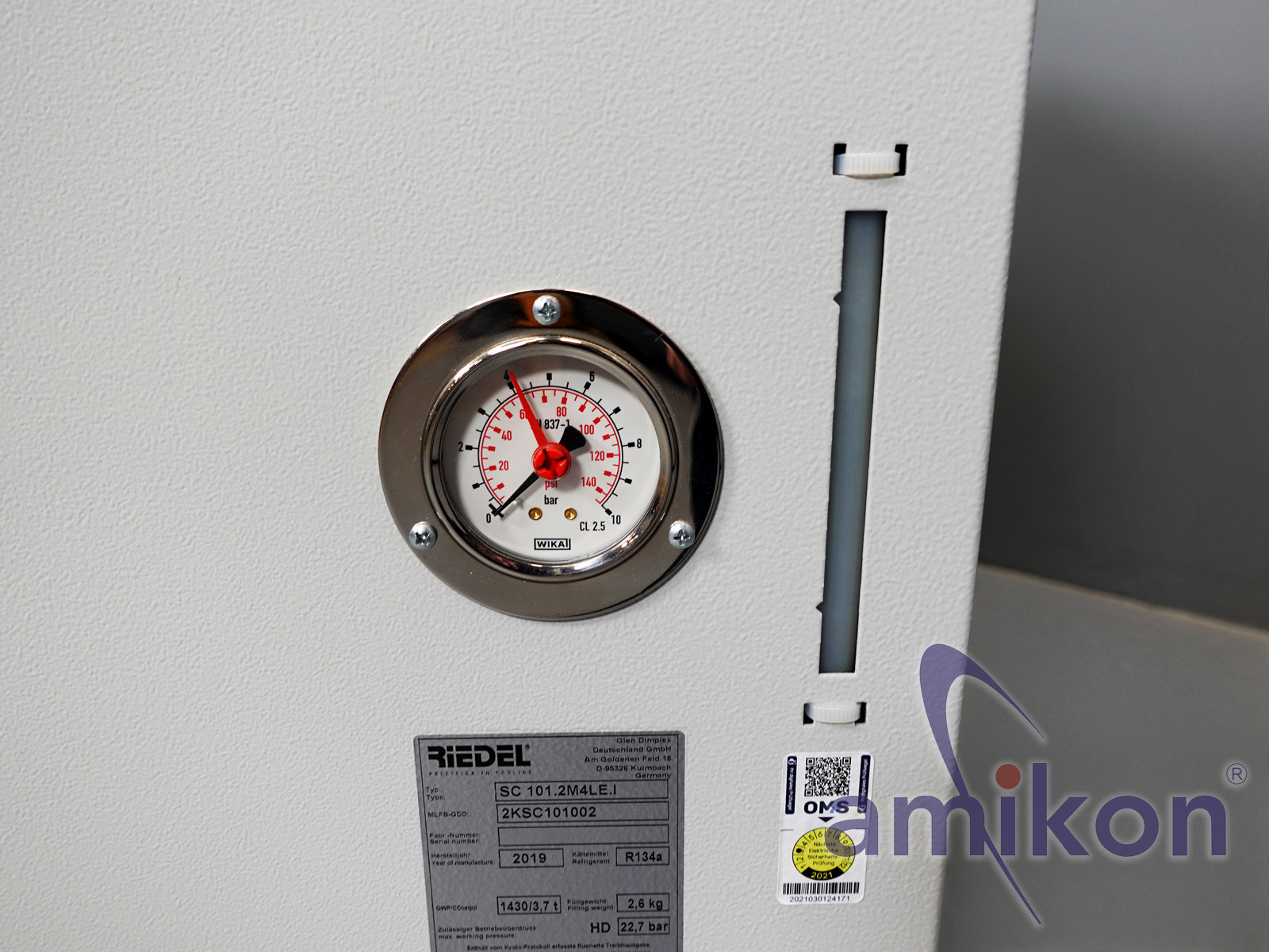 Der Chiller ist luftgekühlt und arbeitet mit dem Kältemittel R134a.