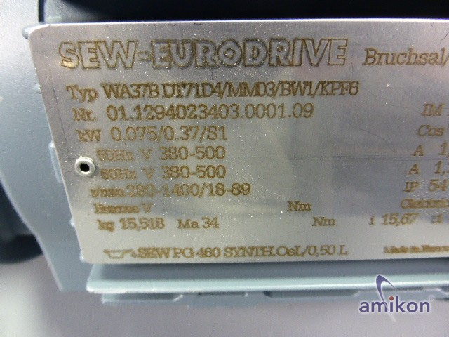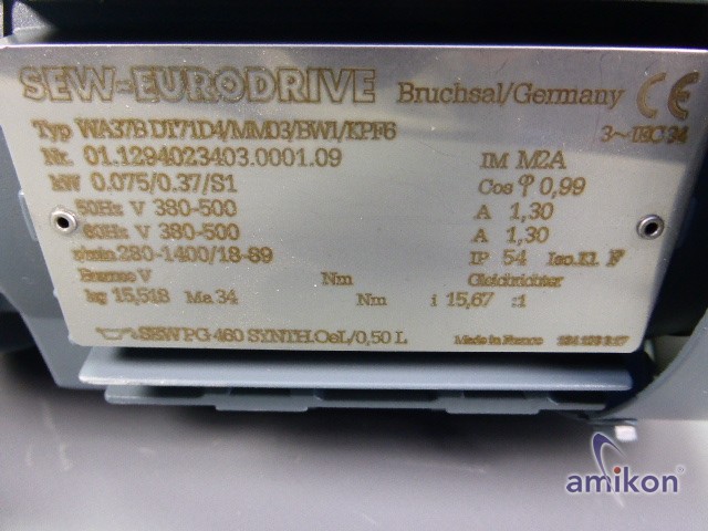 SEW-Eurodrive-Getriebemotor WA37B DT71D4/MM03/BW1/KPF6 0,37kW