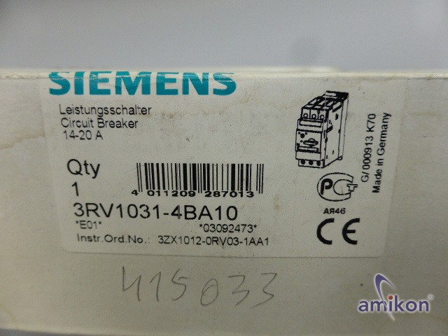| Modell | Siemens Leistungsschalter 3RV1031-4BA10 |