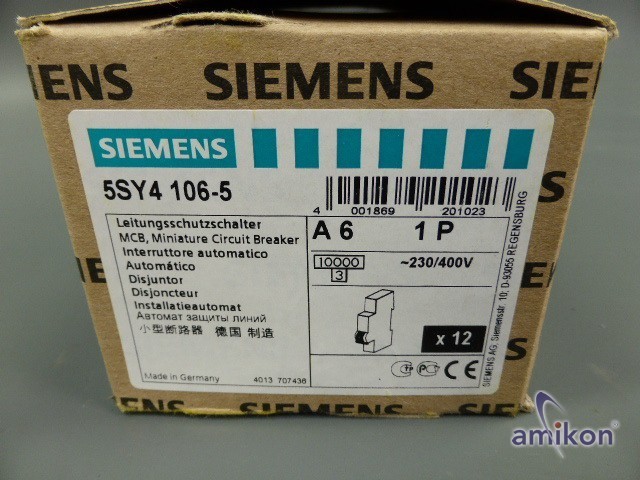 | Modell | Siemens Leitungsschutzschalter 5SY4106-5 |