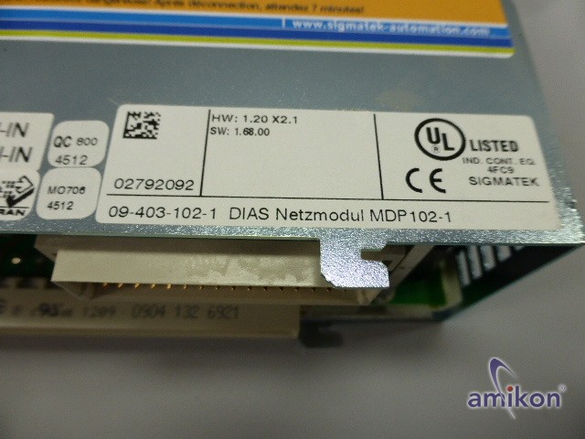 | Modell | Sigmatek DIAS Netzmodul MDP102-1 HW:1.20X2.1 |