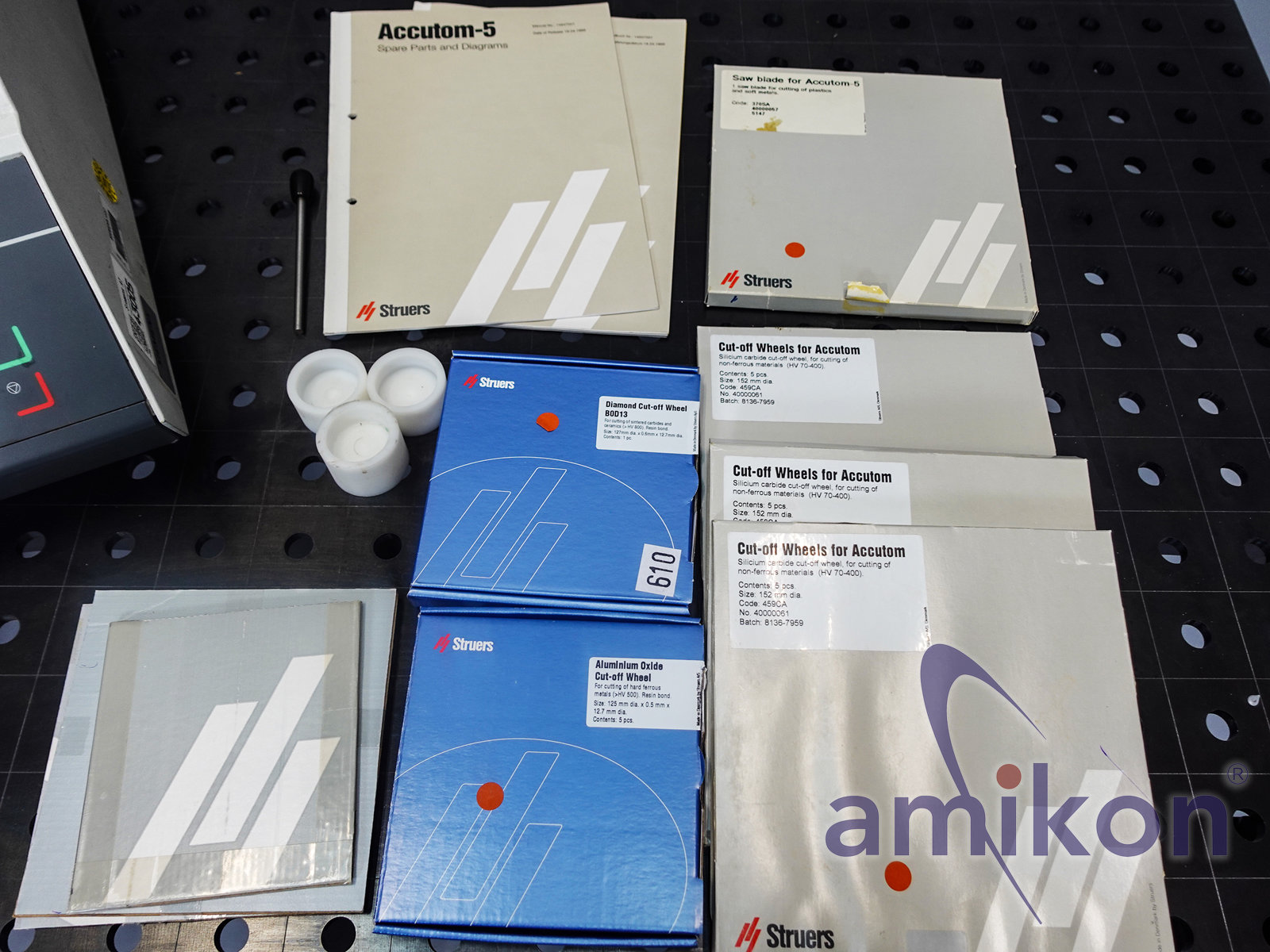 Mit dabei ist umfangreiches Zubehör und mehrere originale Struers-Trennscheiben (siehe Fotos).