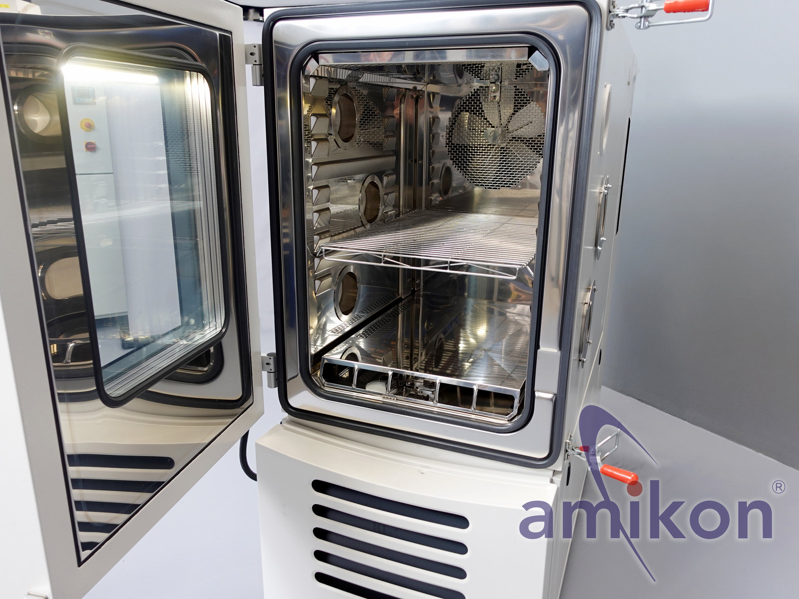 Die Kammer arbeitet luftgekühlt und verfügt über ein Umluftsystem für eine gleichmäßige
